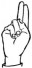 На ћирилици написано ВИКТОР ДАБИЋ састоји се из 11 слова [?]. Исписано ћириличном једноручном азбуком за глувонеме:
